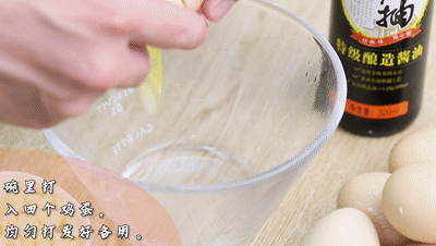 碗里打入四個雞蛋打發(fā)好備用